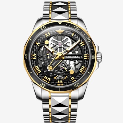 好潮的全新镂空机械表,做工精致,戴起来也非常好看,戴了有一段时间了,走时依旧准确,非常完美的一款全自动机械表,机芯走时也很准确,表带戴着很舒适,!!还送真皮表带,包装跟高大上!!戴上很上档次,大小合适非常不错哦!!!